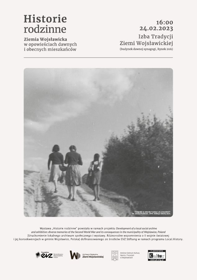 Wystawa powstała w ramach projektu Development of a local social archive and exhibition: diverse memories of the Second World War and its consequences in the municipality of Wojslawice, Poland [Uruchomienie lokalnego archiwum społecznego i wystawy. Różnorodne wspomnienia o II wojnie światowej i jej konsekwencjach w gminie Wojsławice, Polska] dofinansowanego ze środków EVZ Stiftung w ramach programu Local.History.